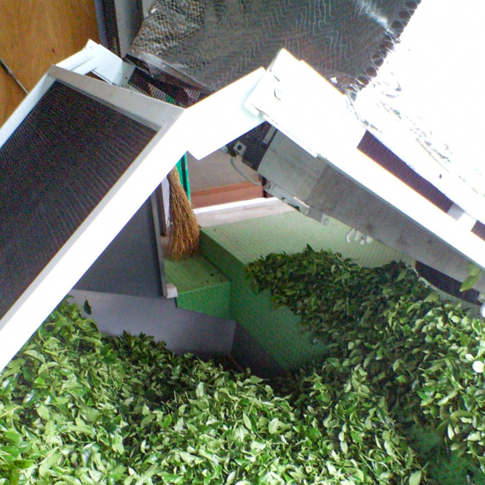 平成3年には、一層の作業の効率化・省力化を図るため、県下で始めて乗用型摘採機2台が導入され、その後も機械導入が急速に進んでおり、乗用型摘採機導入茶園は地区の8割を超え、県下で最も機械化が進んだ地域であり、省力化とともに機械による正確な刈高調整により、刈取り生葉の品質向上にも寄与しています。